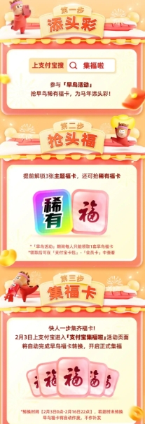 在2月3日正式开启时,进入集福活动页面,将自动转化为正式福卡,开启集福。