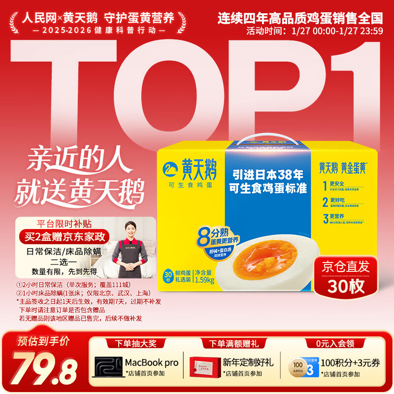 黄天鹅可生食鸡蛋30枚礼盒装拍2到手价115.8元