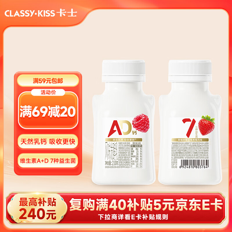 卡士007AD钙益生菌酸奶210g*2瓶 最终到手价40.2元