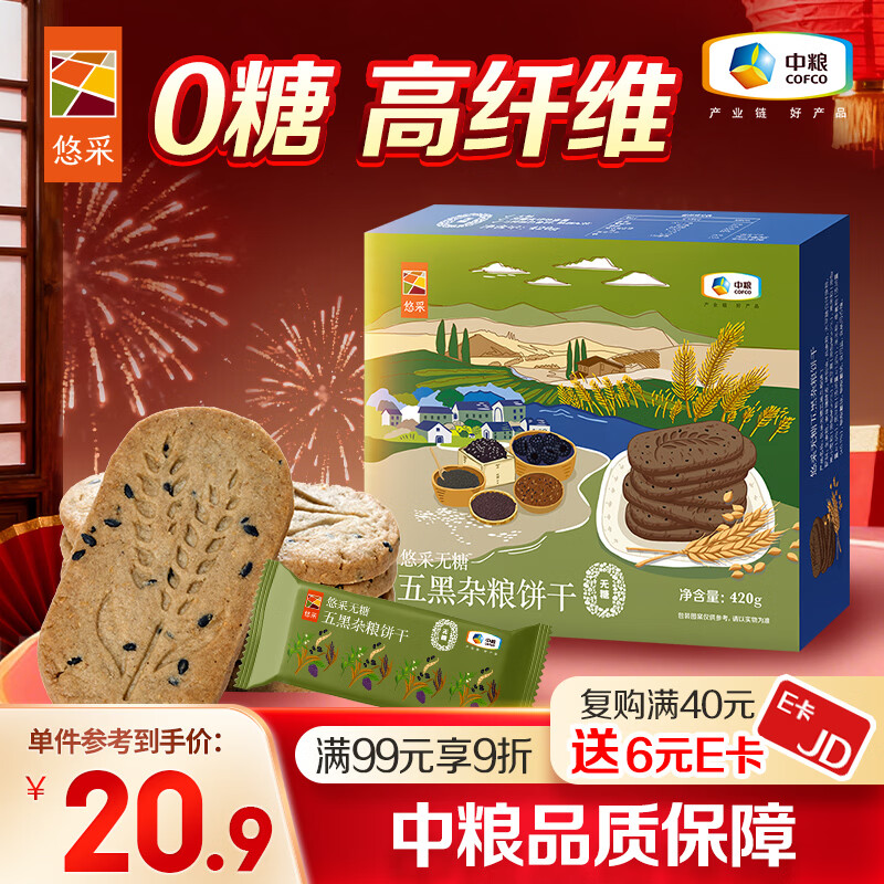 悠采无糖五黑杂粮饼干420g 最终到手价5.6元