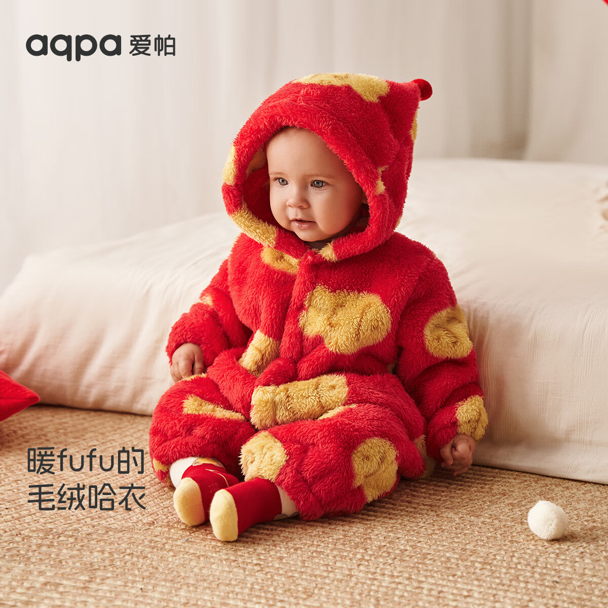 ¥79 aqpa爱帕新生儿婴儿衣服夹丝夹棉秋冬保暖发热宝宝连体衣哈衣爬服 金鱼 90cm 179