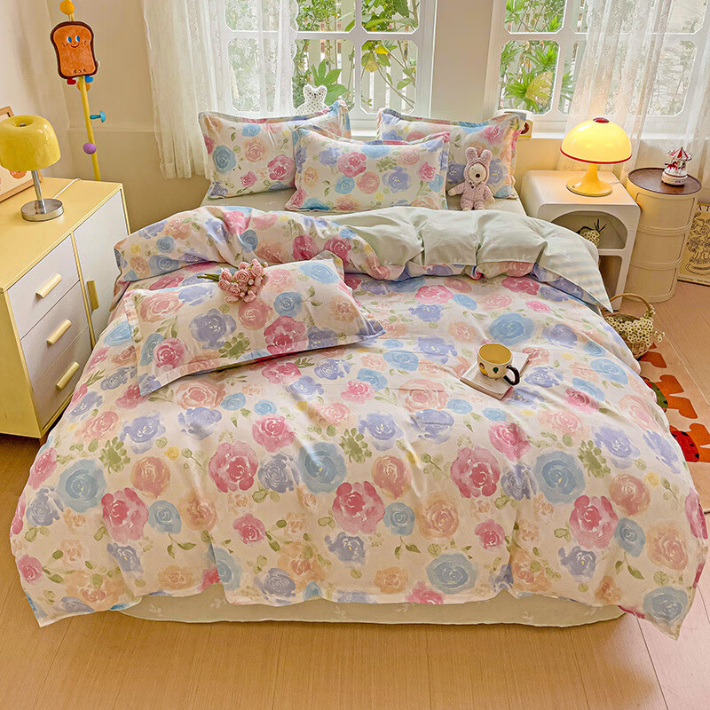 ¥69.9 多兰诗(Duolanshi)春秋加厚磨毛四件套 ins四件套花卉田园风格床单被套四件套 蔷薇花 2.0米 床单款 被套200*230 四件套 139.9