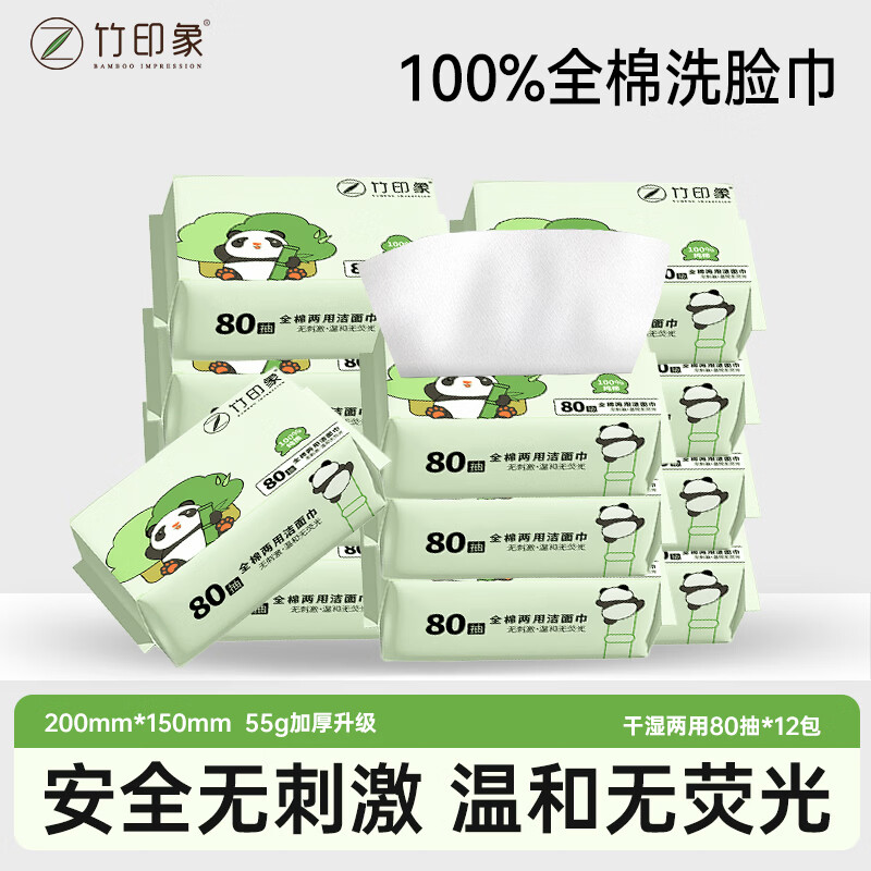 竹印象纯棉洗脸巾黑五特惠19.83元