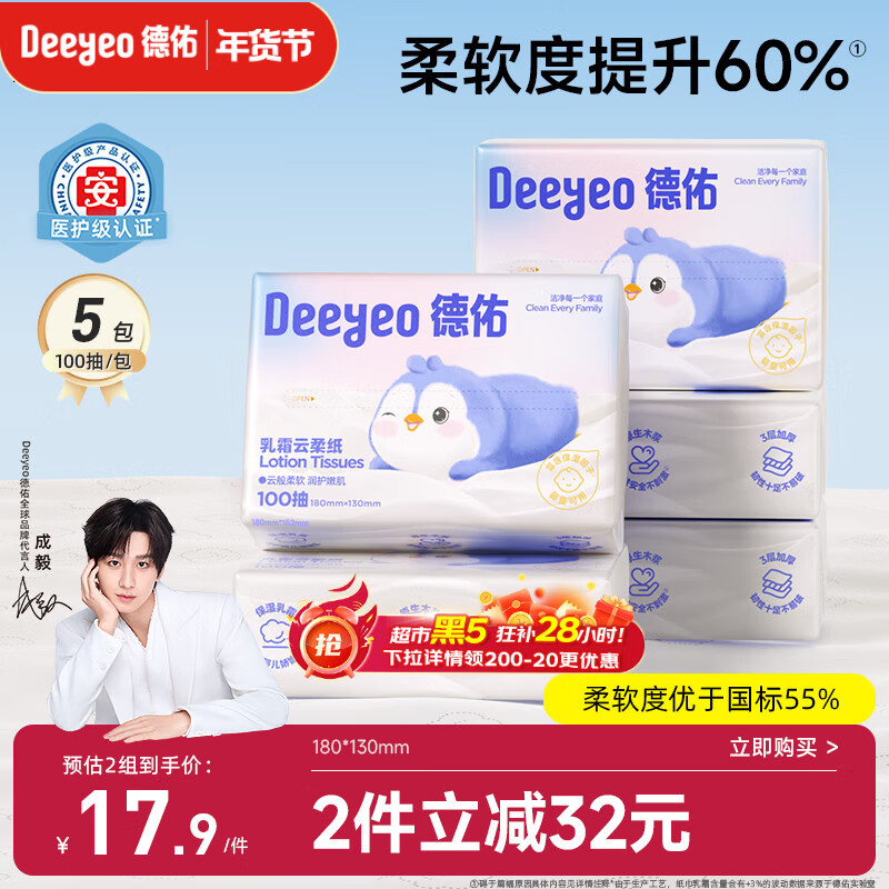 德佑婴儿适用乳霜纸最终到手价25.8元