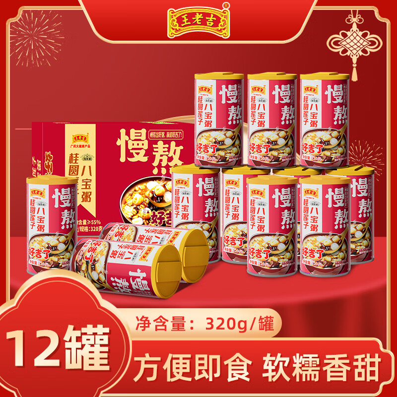 王老吉桂圆莲子八宝粥320g*12罐礼盒装 29.9元包邮