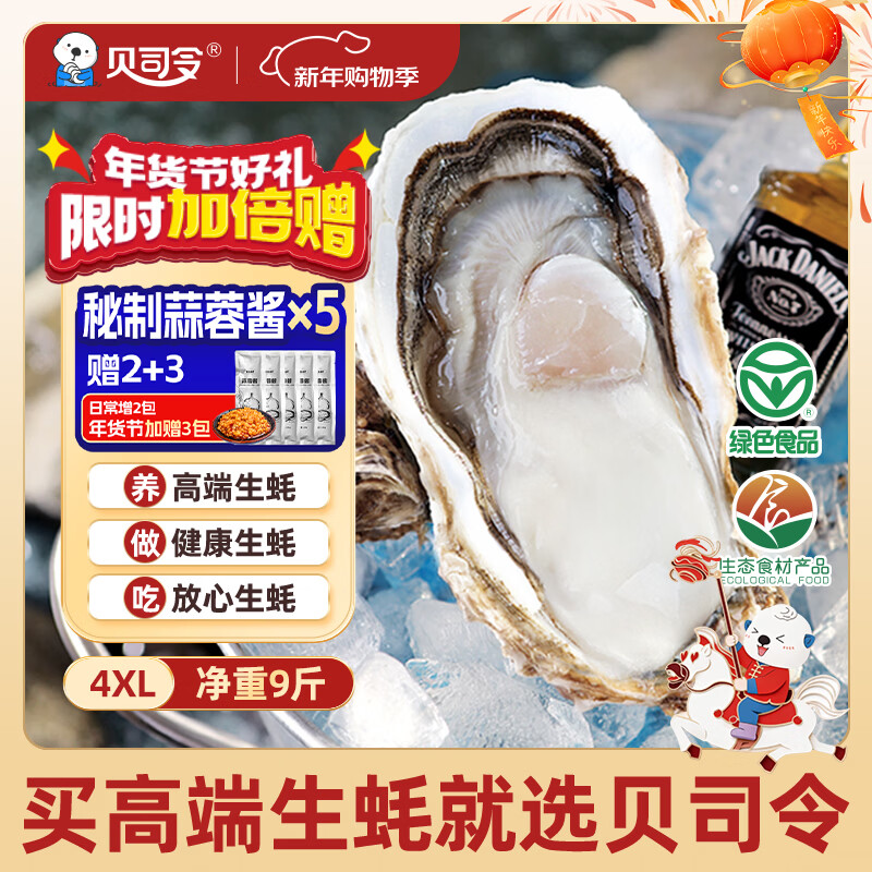 鲜活乳山生态生蚝4XL净重9斤到手价91.2元