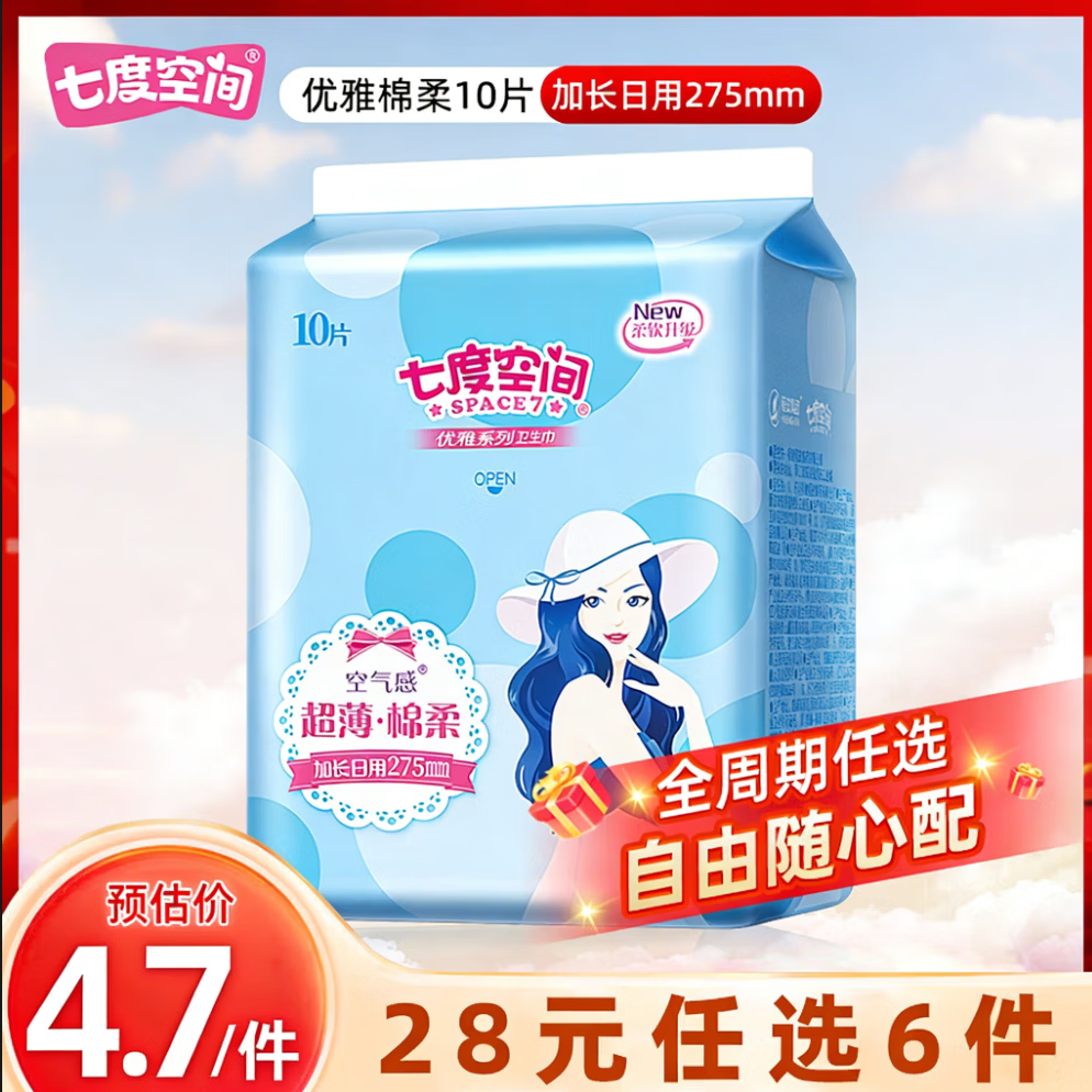 七度空间卫生巾任选6件仅需27.8元,大规格组合更划算