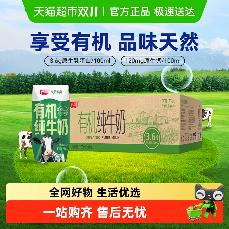 ¥60.8 光明有机纯牛奶200ml×24盒 62.8