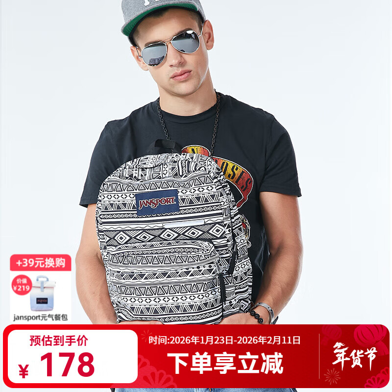 ¥178 JANSPORT杰斯伯双肩包女男时尚休闲双肩包/裁切不一样花纹会不一致 T50F0GT黑白几何拼接-电脑隔层 266