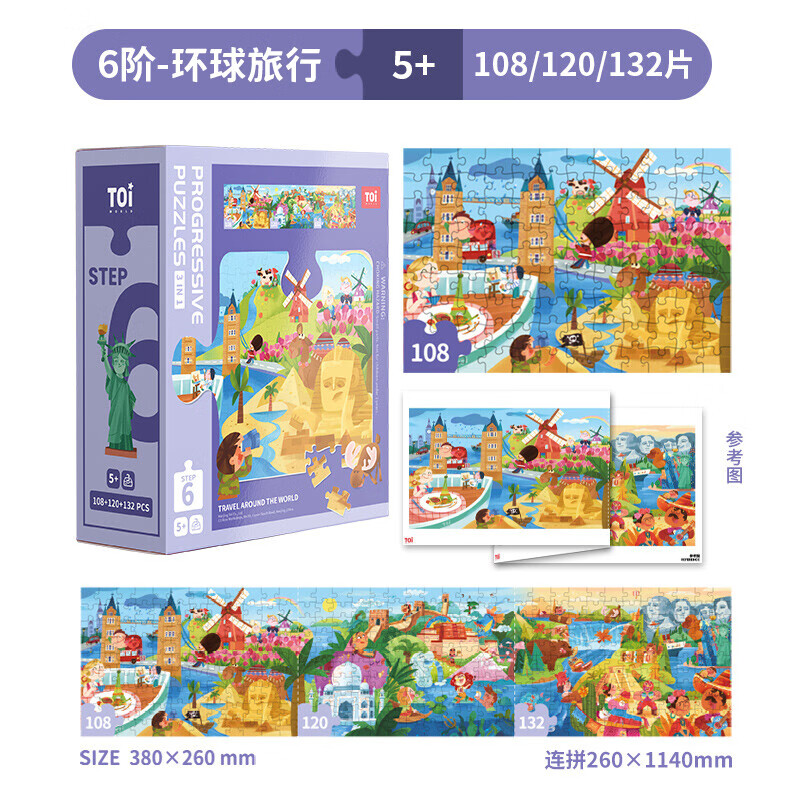 ¥34.8 TOI儿童特供拼图3-6岁进阶拼图早教玩具男孩女孩生日礼物 6阶-环球旅行(适合5岁+3盒) 69.8