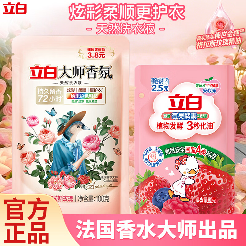 立白大师香氛洗衣液100g+洗洁精80g到手2.9元