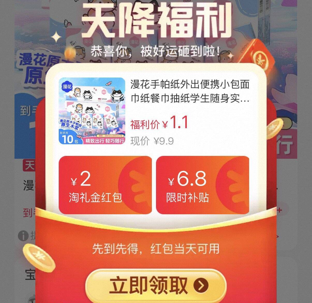 漫花原木手帕纸10包 到手价仅需1元