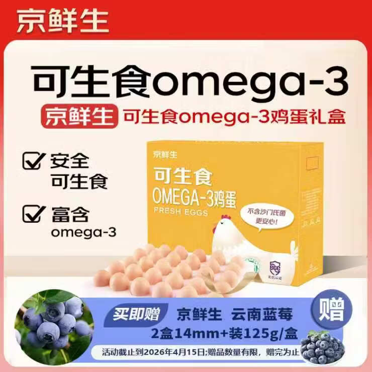 自营京鲜生供港可生食鸡蛋30枚,plus会员到手仅47.3元还送蓝莓
