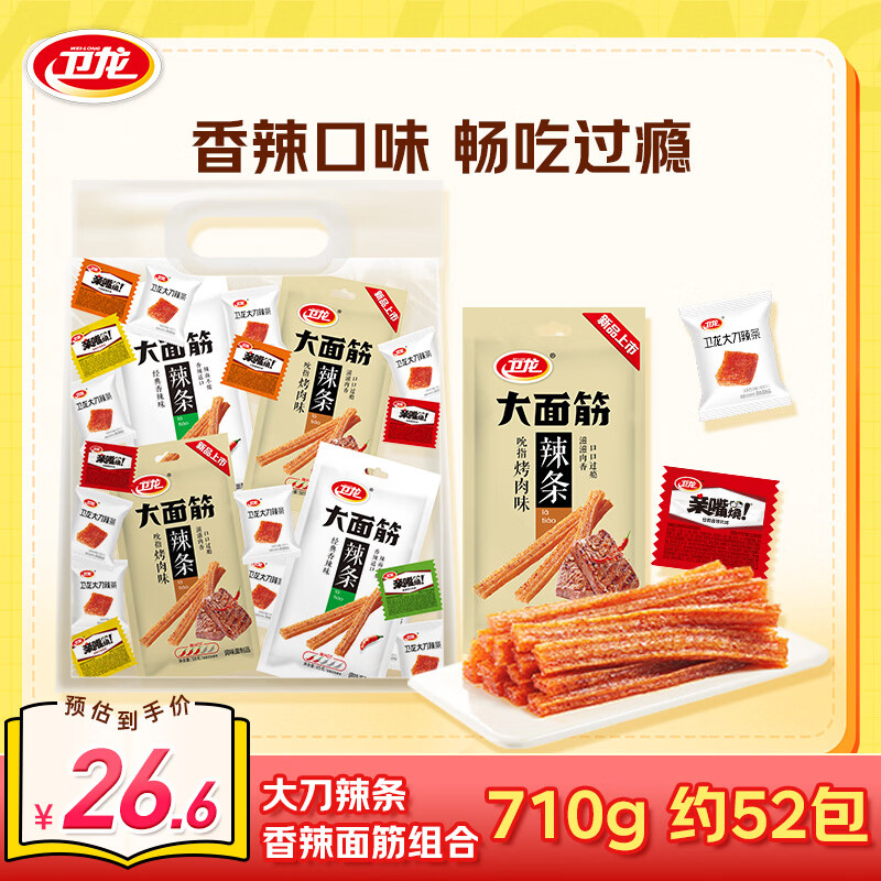 卫龙大刀辣条+香辣面筋组合710g约52包 仅需19.9元