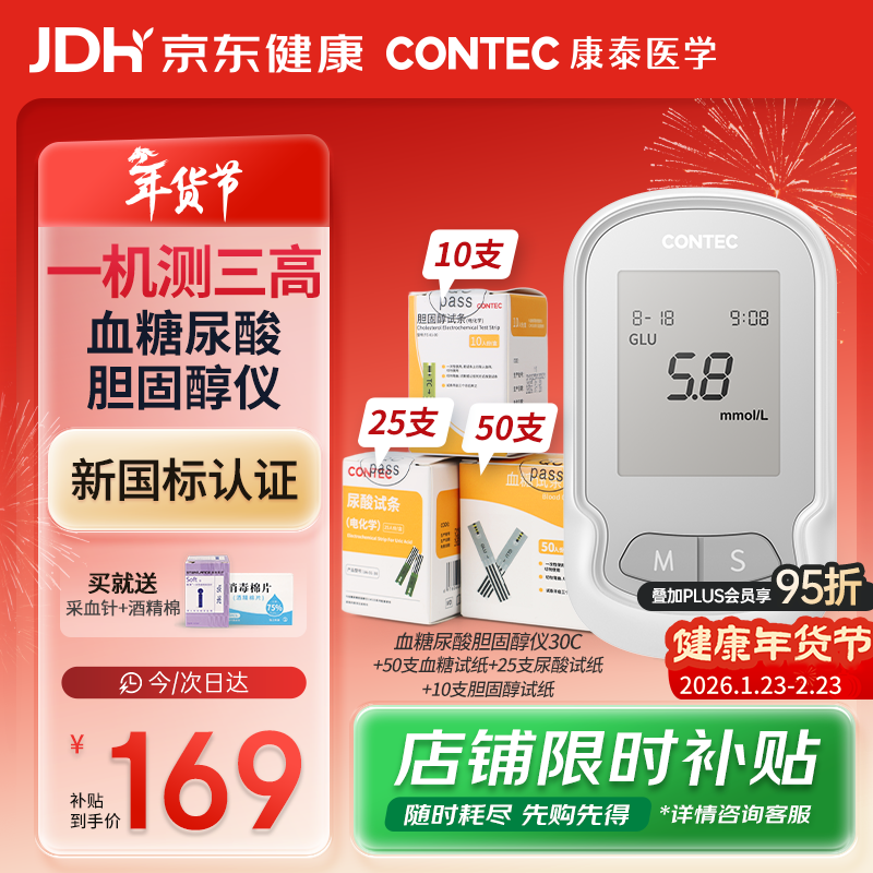 CONTEC康泰血糖尿酸胆固醇检测仪套装 9.6折优惠