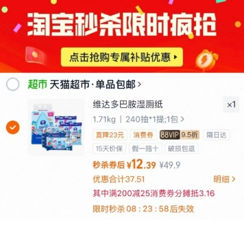 12.39元!维达湿厕纸40抽*5包+10抽*4包