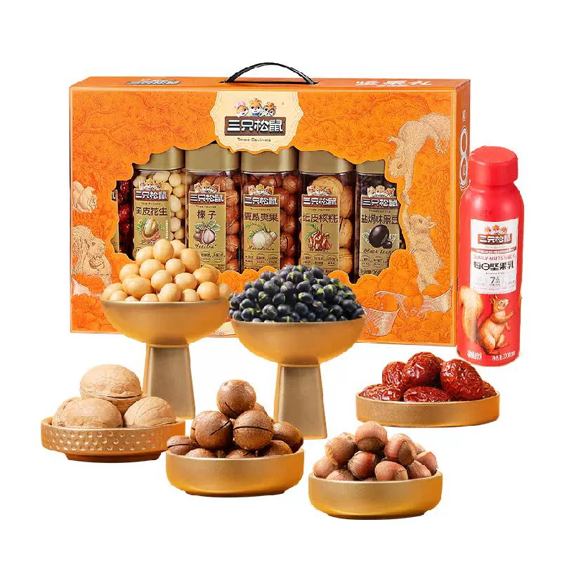 ¥49.9 单盒27.63元,三只松鼠1518g福意礼10袋装 49.9