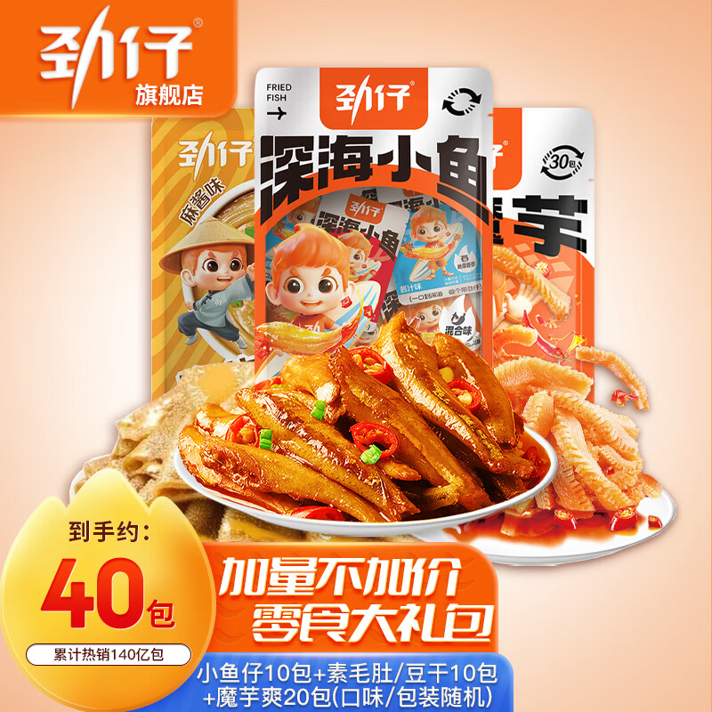 ¥49.9 劲仔深海小鱼湖南特产小鱼干休闲零食小吃下酒菜零食大礼包节日礼物 【混合味】零食组合40包 69.9