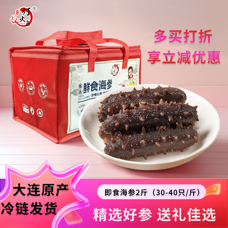 ¥154 灯火岛即食海参 大连生鲜冷冻辽刺参即食刺参 单个独立包装年货海鲜礼盒 即食海参1000g(30-40只/斤)礼袋款 399