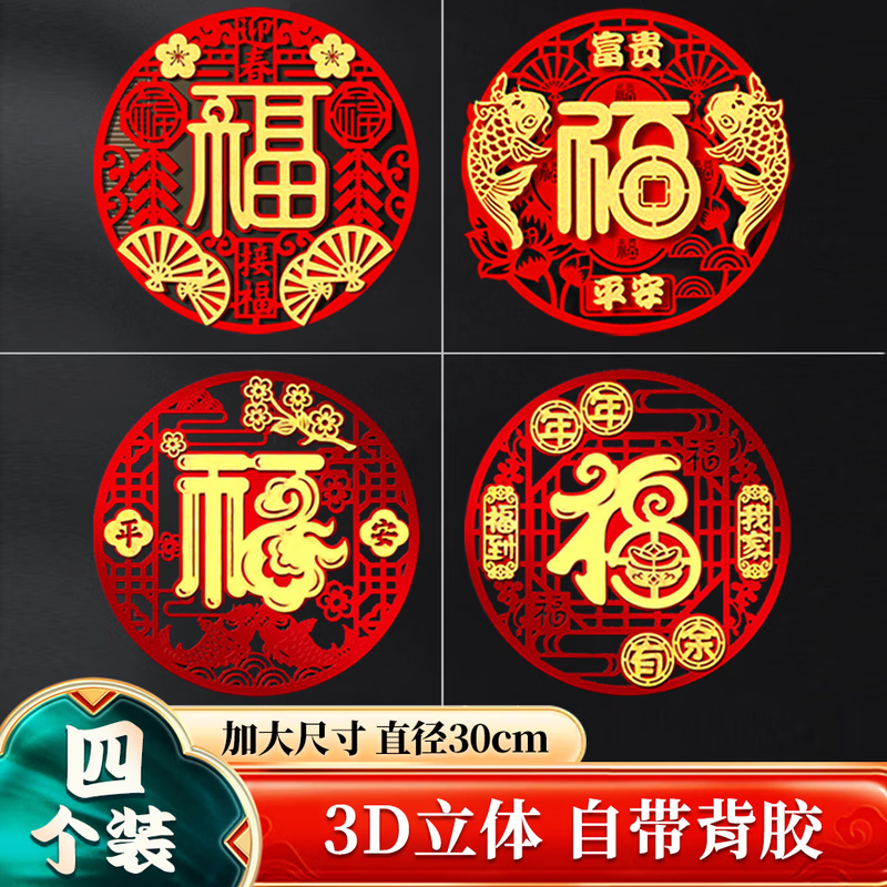 ¥15.9 简艺饰家新年红包2026年创意最新款马年过年春节小红包压岁钱 圆形福字4个装 35.9