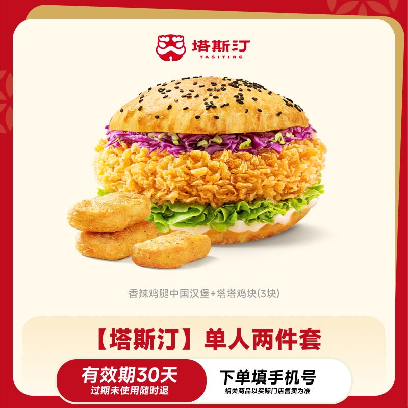 美团塔斯汀两件套:香辣鸡腿汉堡+3块鸡块仅需10.2元