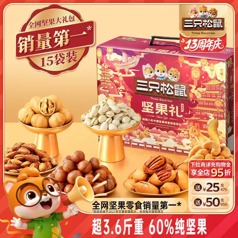 ¥89.9 下拉!三只松鼠鼎紫礼20袋/4斤送长辈 89.9