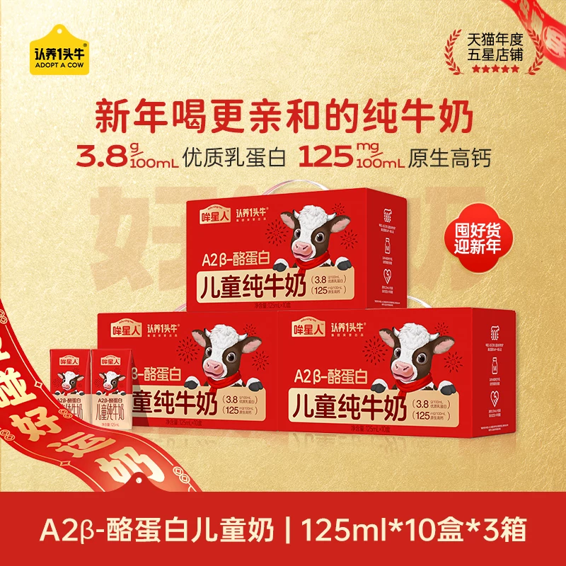 ¥74.9 【日期新鲜】认养一头牛A2β儿童奶10瓶*3箱 104.9