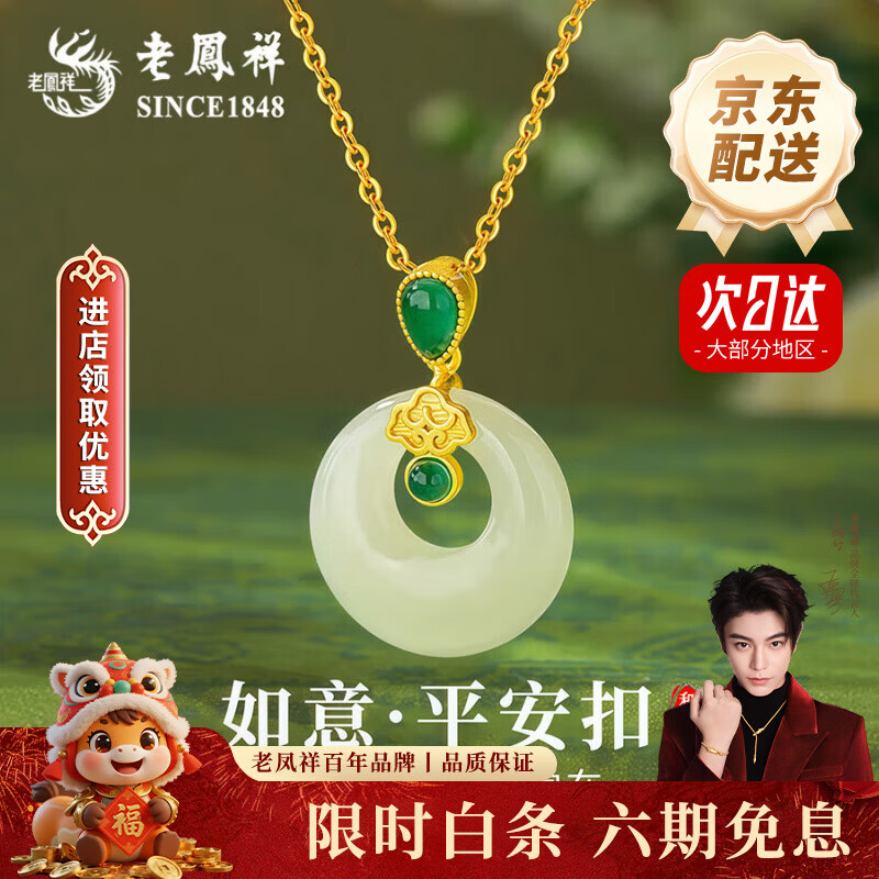 ¥318.94 老凤祥如意和田玉平安扣项链女轻奢2026新款时尚轻奢情人节礼物送女朋友 今/次日达*如意和田玉平安扣项链【品牌礼盒】 358.94