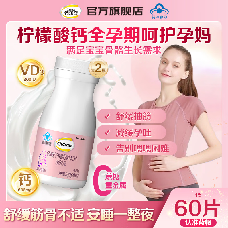 ¥155 钙尔奇(Caltrate)钙尔奇钙片合集包含孕妇钙金钙液体钙女钙 【备孕哺40天量】温和补钙 60片*2瓶 装 300