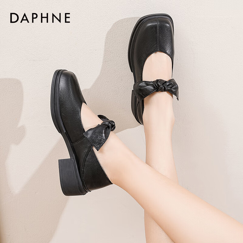 ¥79.9 达芙妮复古玛丽珍女鞋2025新款鞋子女单鞋学院风乐福鞋厚底百搭小皮鞋ZJ 黑色【蝴蝶结款】 39 229.9