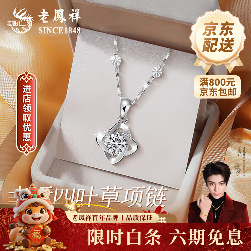 ¥293.45 老凤祥足银幸运草吊坠女2026新款纯银时尚项链纪念日情人节礼物送女朋友 亲肤足银*项链*白-赠S999雪花链 333.45
