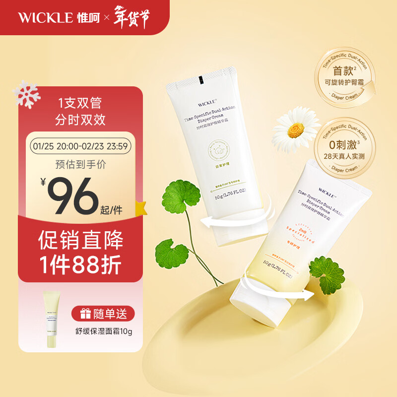 ¥104 WICKLE双管护臀膏新生婴儿宝宝红屁股预防pp护臀霜100g 【2.0推荐】180°扭盖 护理+特护 分时双效护臀霜100g 109