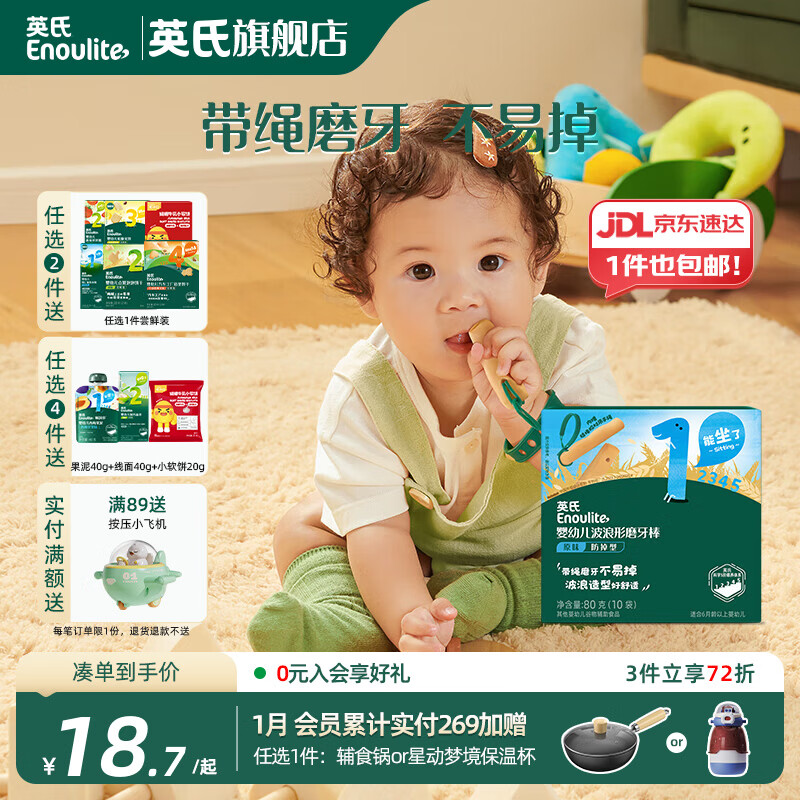 ¥23.47 英氏磨牙棒婴儿6个月以上口欲期高钙波浪造型抗压 【防掉】打孔磨牙棒原味80g 25.97