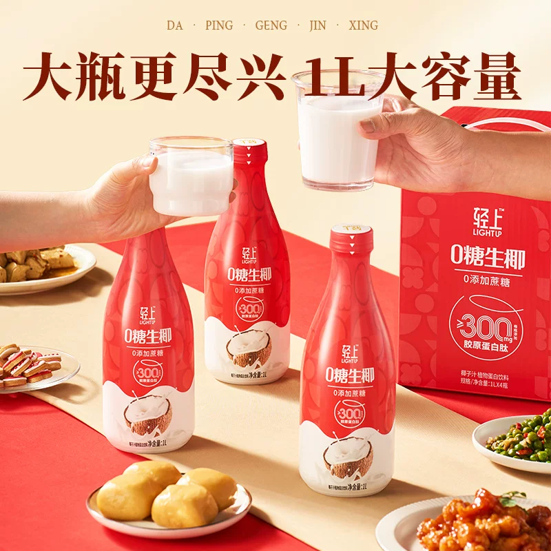 ¥17.9 【年货礼盒】轻上0糖生椰汁1L*2瓶 24.9