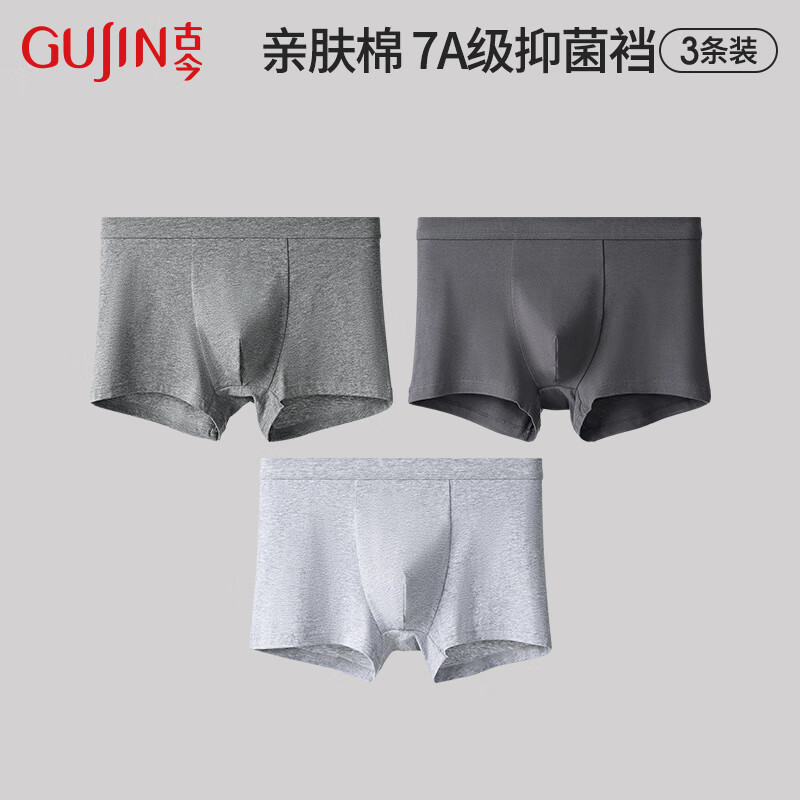¥39.9 古今纯色棉质男士内裤运动风简约宽松四角平角短裤男大码裤衩 浅灰-中灰-深灰 【 3条 2XL (180) 建议130~150斤 59.9