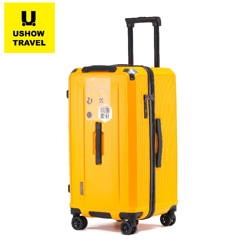 ¥363 USHOW TRAVEL加厚三七分大容量拉杆箱超轻旅行箱刹车轮托运箱男女密码箱行李箱 黄色 24英寸 378
