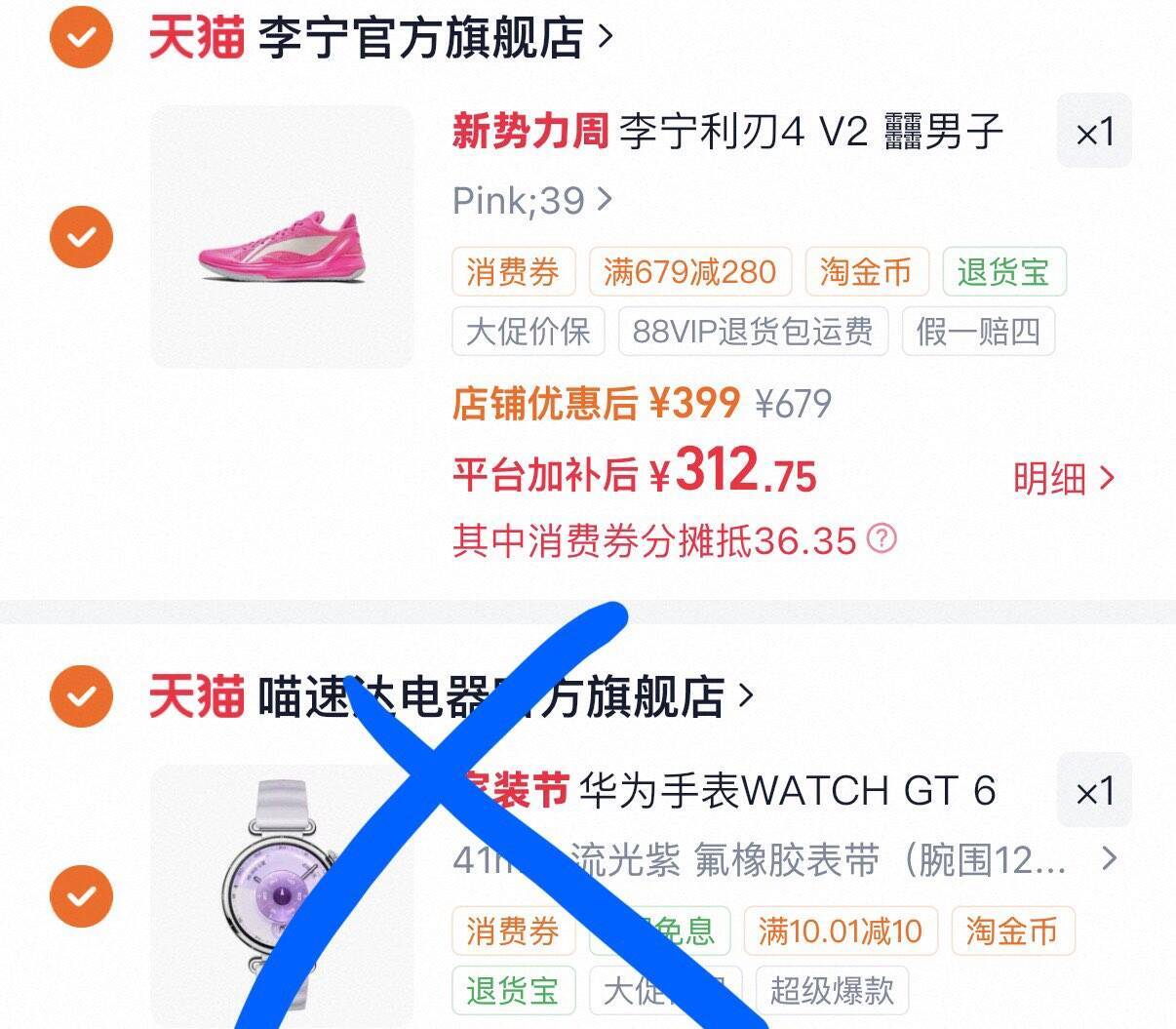 利刃4V2粉色鼠标消费券到手312元,淘金币再抵10元
