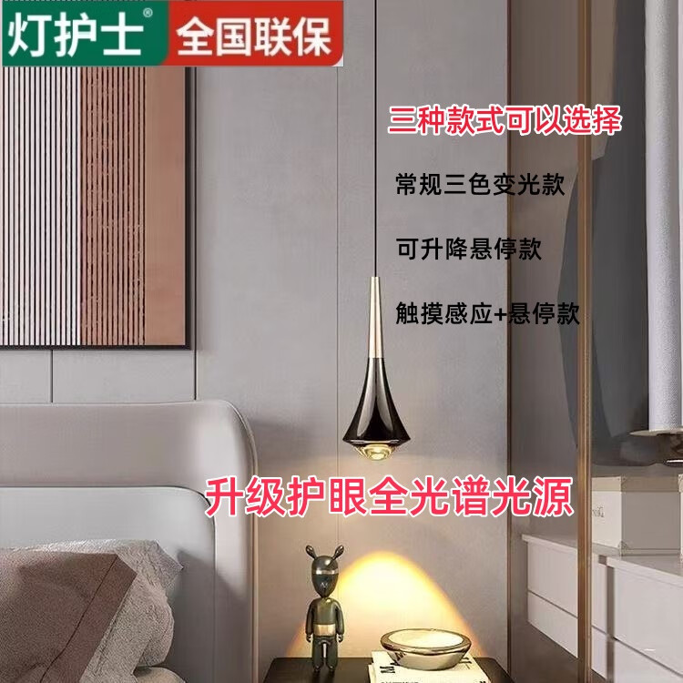 ¥157.9 灯护士卧室床头小吊灯手扫感应可升降调节轻奢高级感雪山触摸手扫吊线灯 【升降款+手扫】亮黑色-三色全光谱 197.5