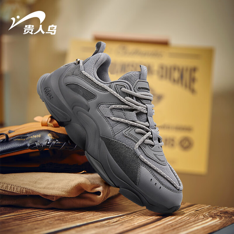 ¥69 贵人鸟【品牌断码清仓】男士板鞋休闲鞋篮球鞋老爹鞋运动鞋男款跑步鞋 中灰色F398687 41 169