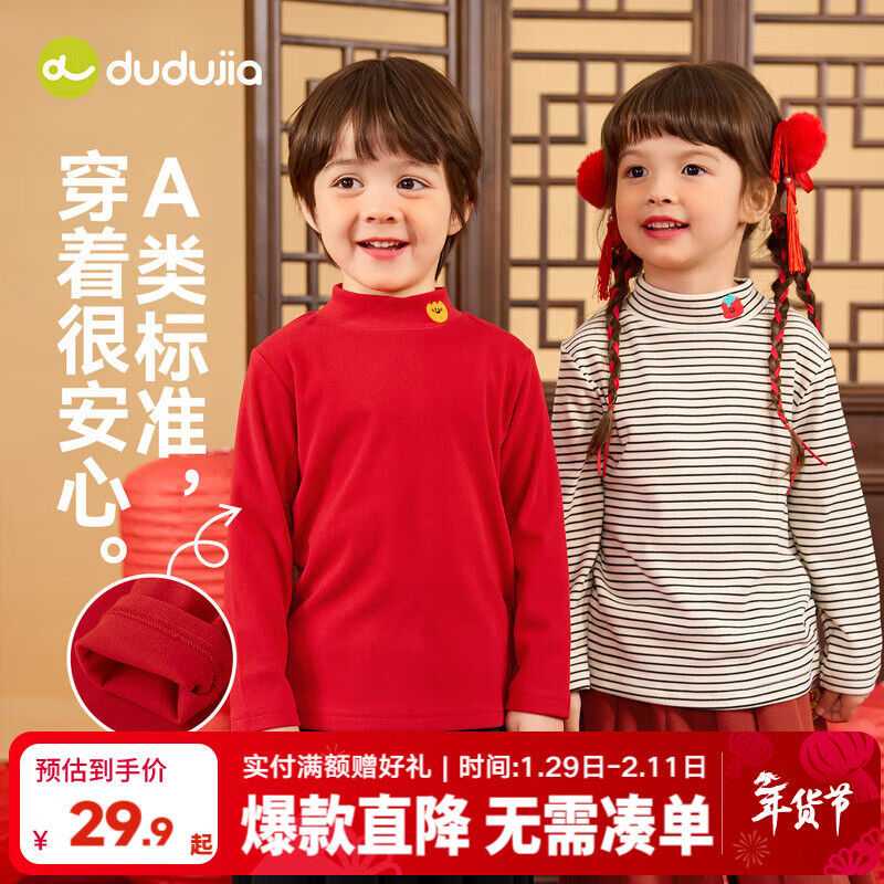 ¥25 嘟嘟家儿童打底衫拜年服冬款宝宝长袖t恤冬装男童过年衣服女童新年童装 黑白系条纹 100 34