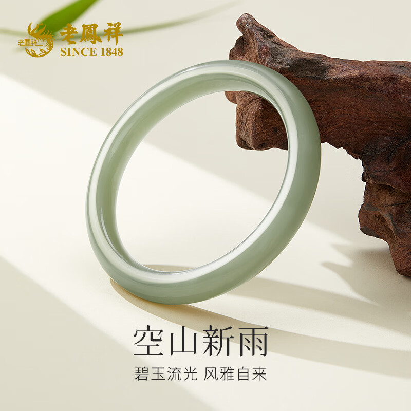 ¥929 老凤祥和田玉手镯水湖绿平安镯玉手镯玉镯送女朋友送老婆情人节礼物 和田玉手镯60-62#【+证书+品牌礼盒】 949