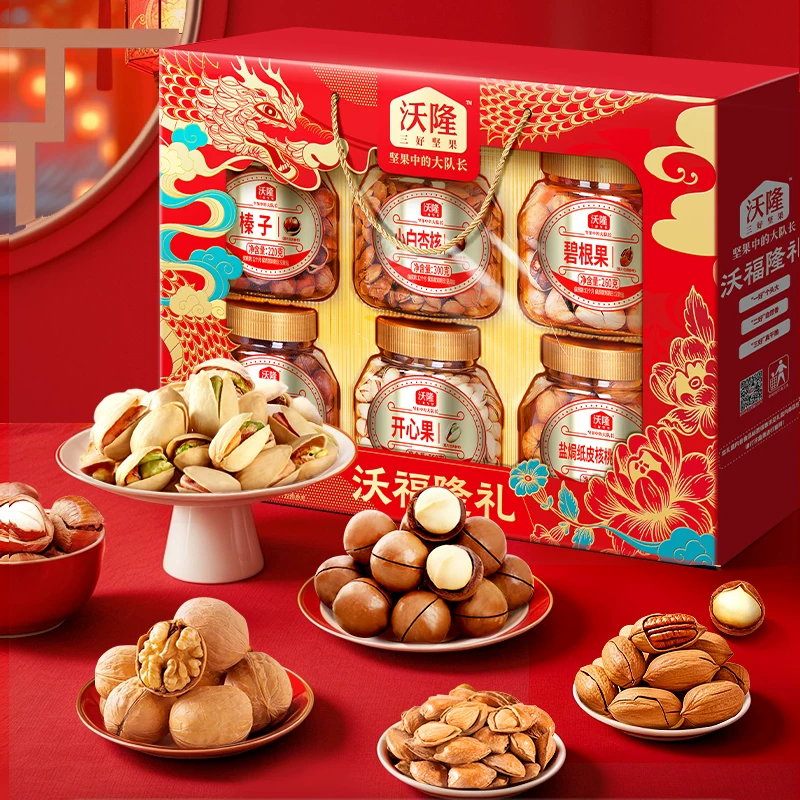 ¥102.2 超市269元!高端款!沃隆坚果礼盒1520g/6罐 112.2