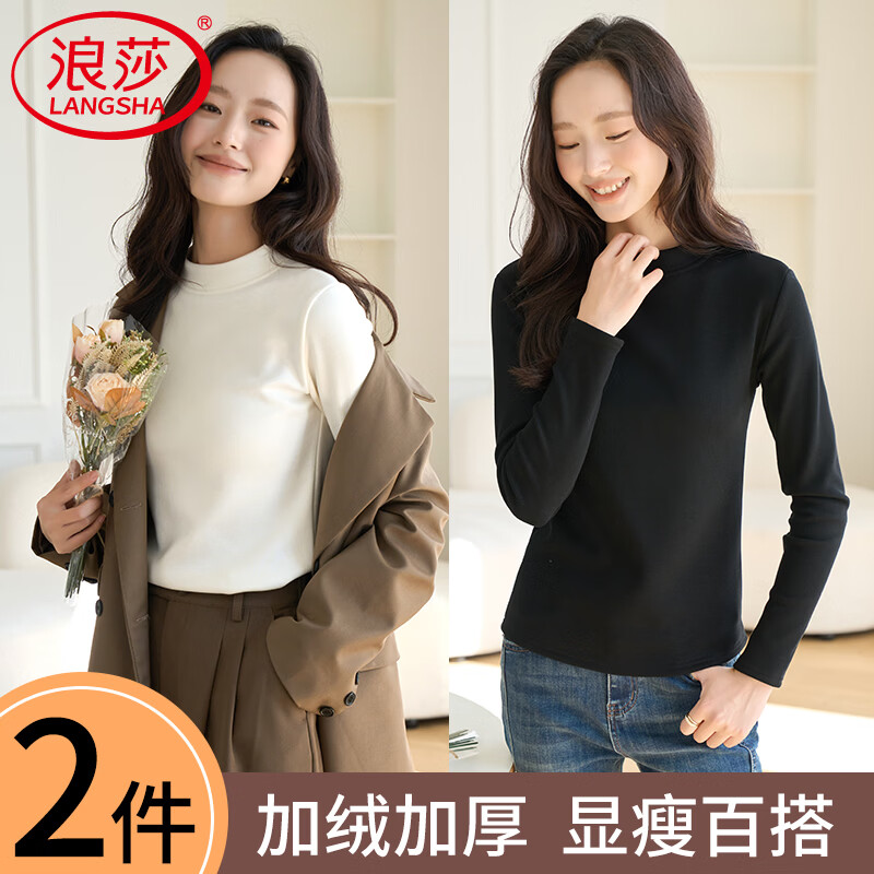¥49.9 浪莎半高领打底衫女秋冬新款修身显瘦加厚保暖内搭可外穿长袖针织上衣 米白色+黑色 【亲肤柔软】 2XL 【适合140-160斤】 99.9