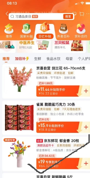 自营售价35.9元,先收藏,叠10元券,打开京东APP首页-国家补贴X百亿补贴-前排找到鲜花实付新低19元包邮。