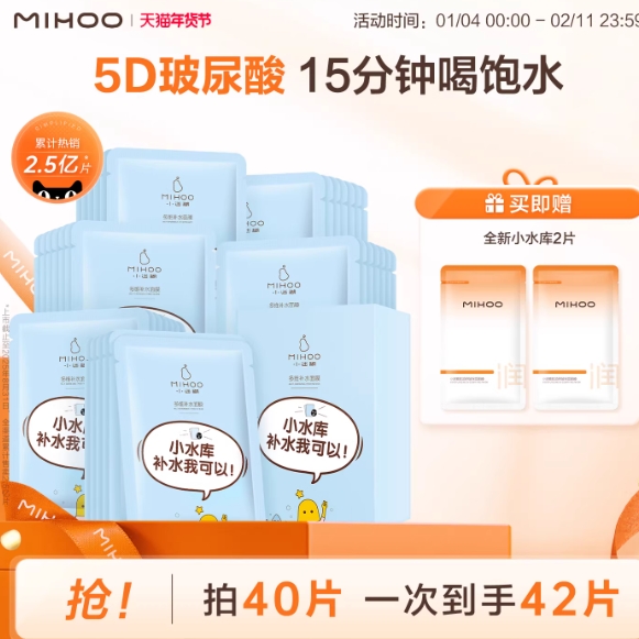 33.8元包邮!小迷糊 第5代小水库 深层补水42片(含赠)