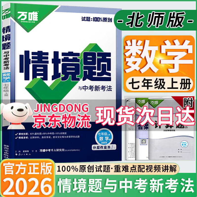 ¥44.06 【旗舰店】万唯中考同步情境题七年级下册上册2026版初中基础题知识同步训练初一7年级上下册万维情景题 七上数学【北师版】26版 万唯 63.9
