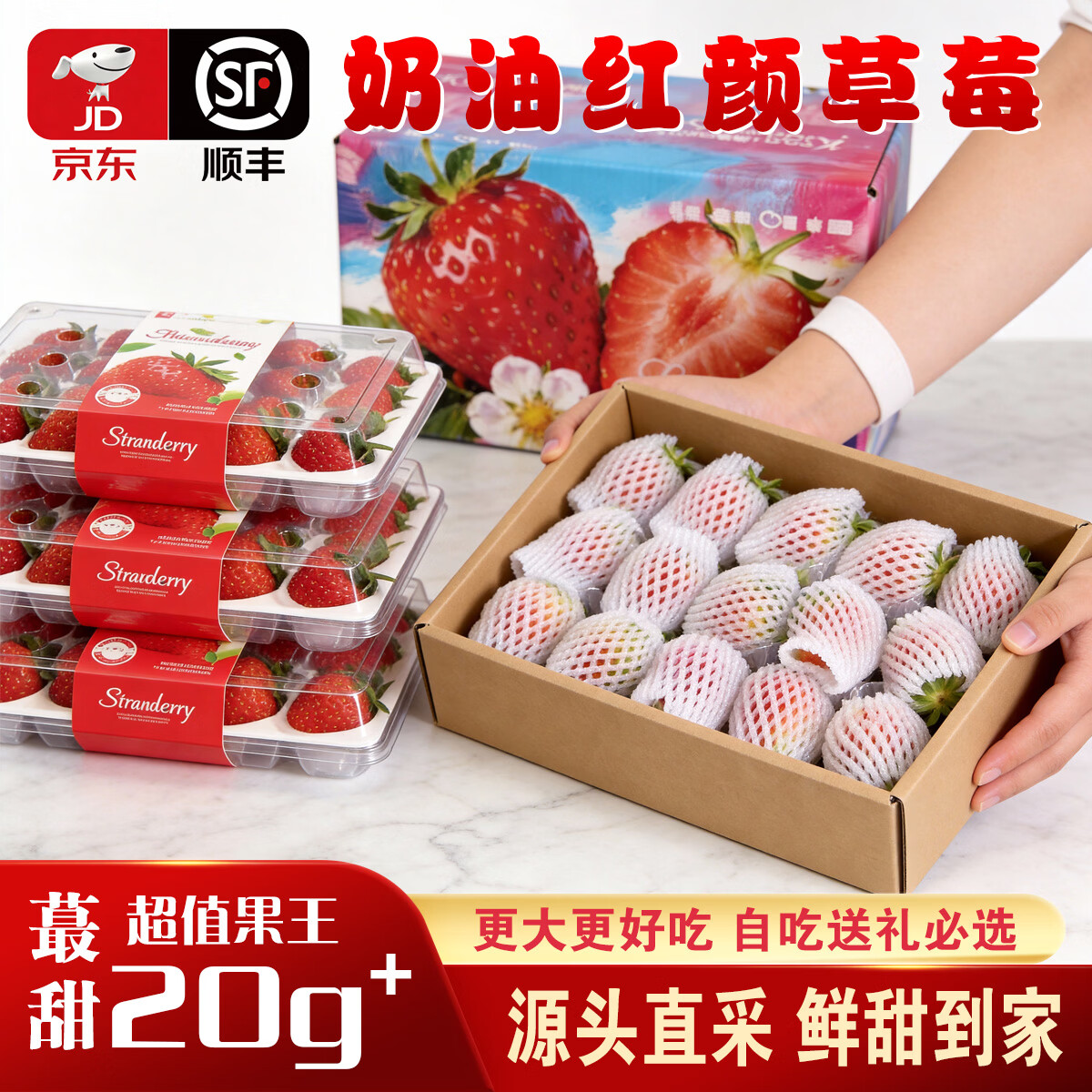 ¥47.9 余悦四川大凉山草莓【JD顺丰-多地次日达】99奶油红颜草莓非丹东草莓 带箱2斤【净重1.5斤-单果15-20g】送礼彩箱装 59.9