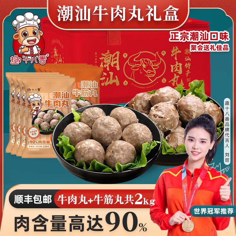 趣十八番潮汕牛肉丸2斤+牛筋丸2斤年货钜惠!火锅必备仅64.9元