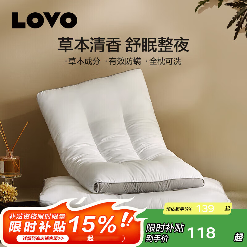 LOVO罗莱家纺5折特惠:决明子枕芯69元、热力毯89元、冬季被149元、蚕丝被399元