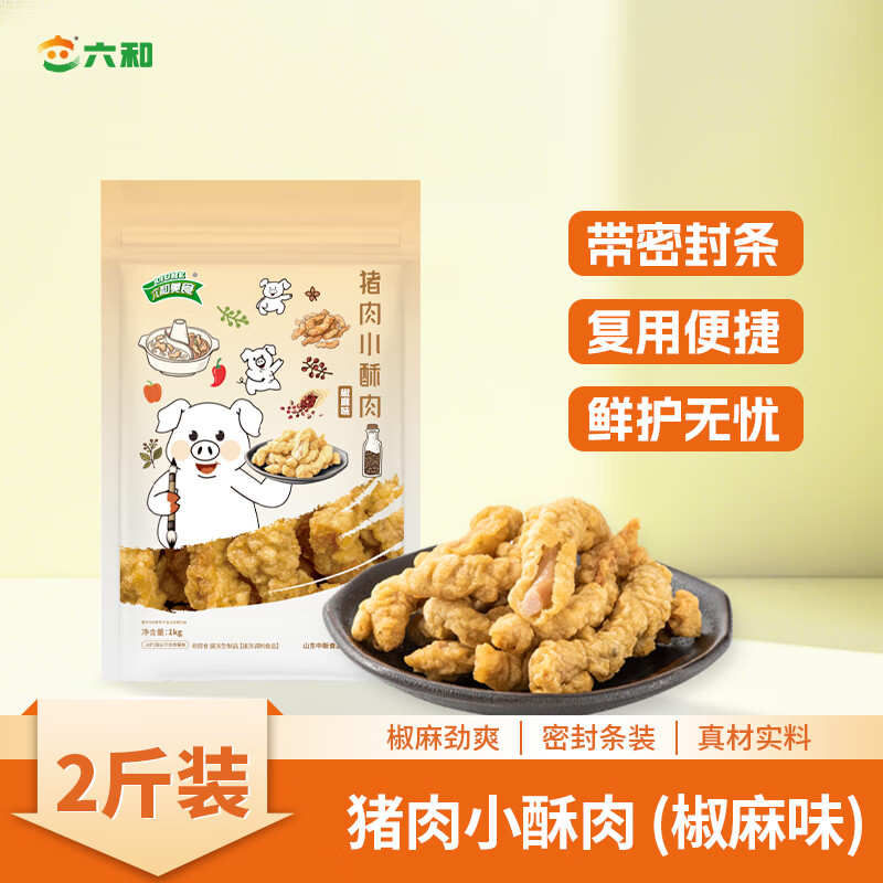 六和猪肉小酥肉椒麻味2斤装,拍2件到手价69.9元